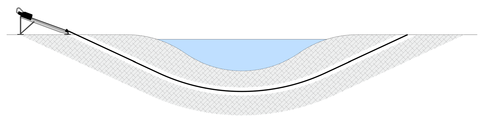 HDD is a multi-pass trenchless construction method where a borehole is drilled from entry to exit, increased to the appropriate size, before pulling the pipe into the borehole. The BHA (Bottom Hole Assembly) is the leading selection of tools in front of the drill pipe, a variety of different BHAs are used throughout the project. This method is reliant on drilling fluid to suspend and transport excavated material (cuttings) from downhole up to surface, as well as minimising borehole collapse.